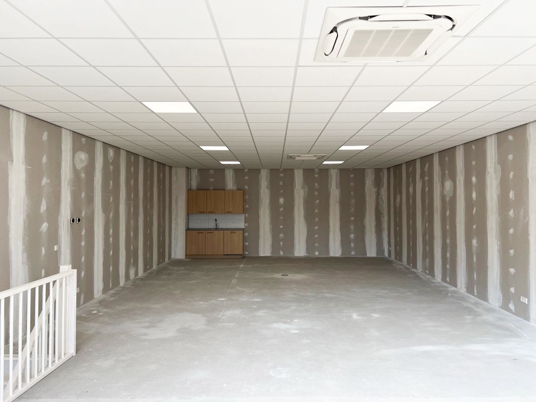Op de verdieping is een uitgebreid afbouwpakket aanwezig met onder andere: 2 cassette units airconditioning, systeemplafond met verlichting, voorzetwanden en een pantry.