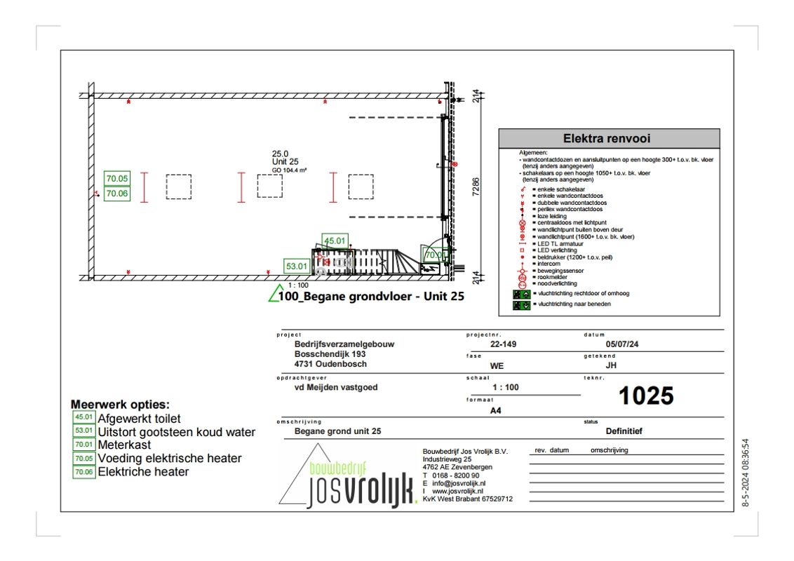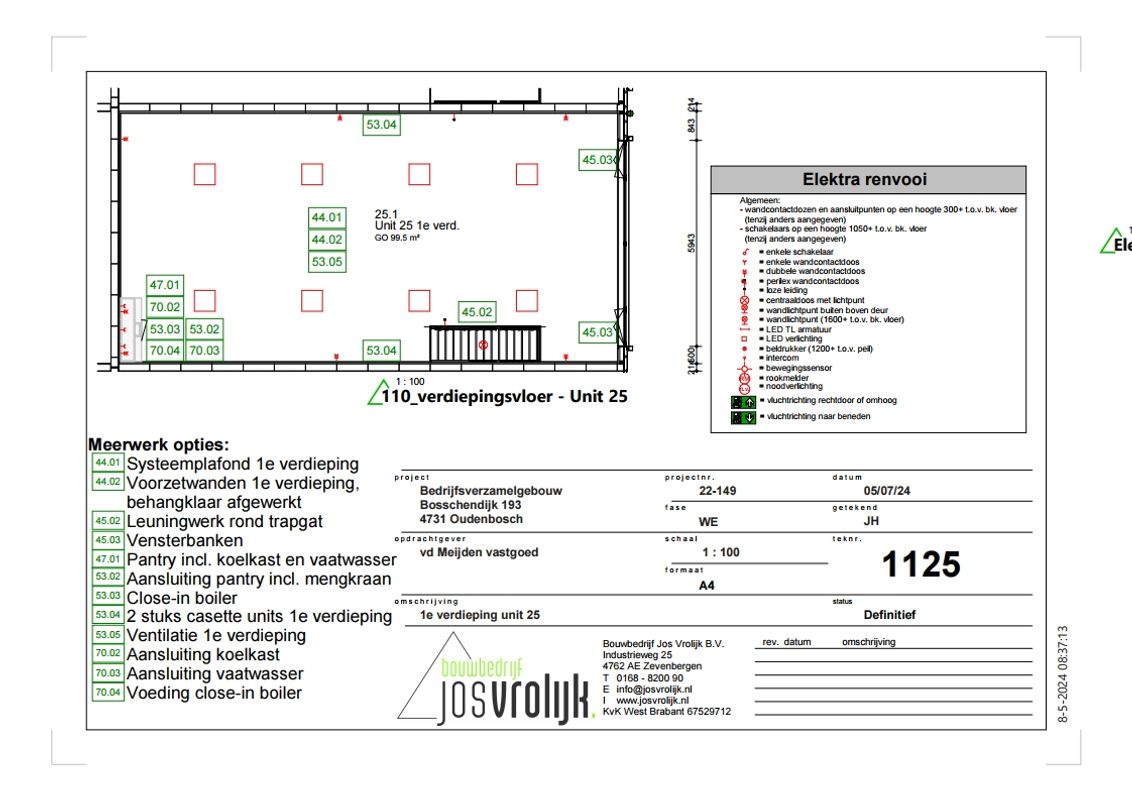 De unit is standaard voorzien van een kanaalplaten (betonnen) verdiepingsvloer, met zandcement deklaag. Daarnaast beschikt de unit over een luxe afgewerkt betegeld toilet, meterkast met elektra en water, een elektrisch bedienbare overheaddeur en drie eigen parkeerplaatsen.