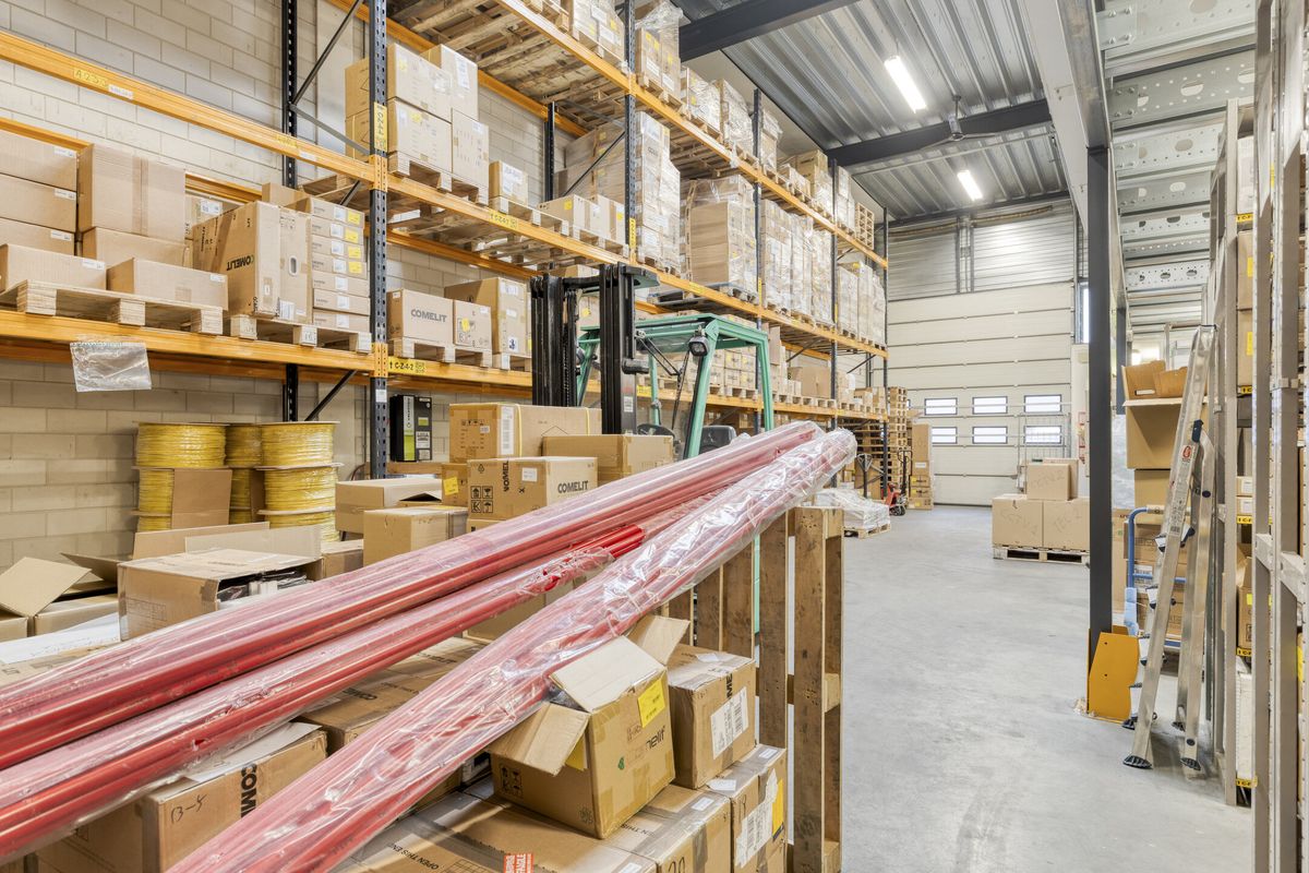 - Entresolvloer van stalen constructie met daarin opgenomen: kantoor voor magazijn, serverruimte op hoogte van 1e verdieping;