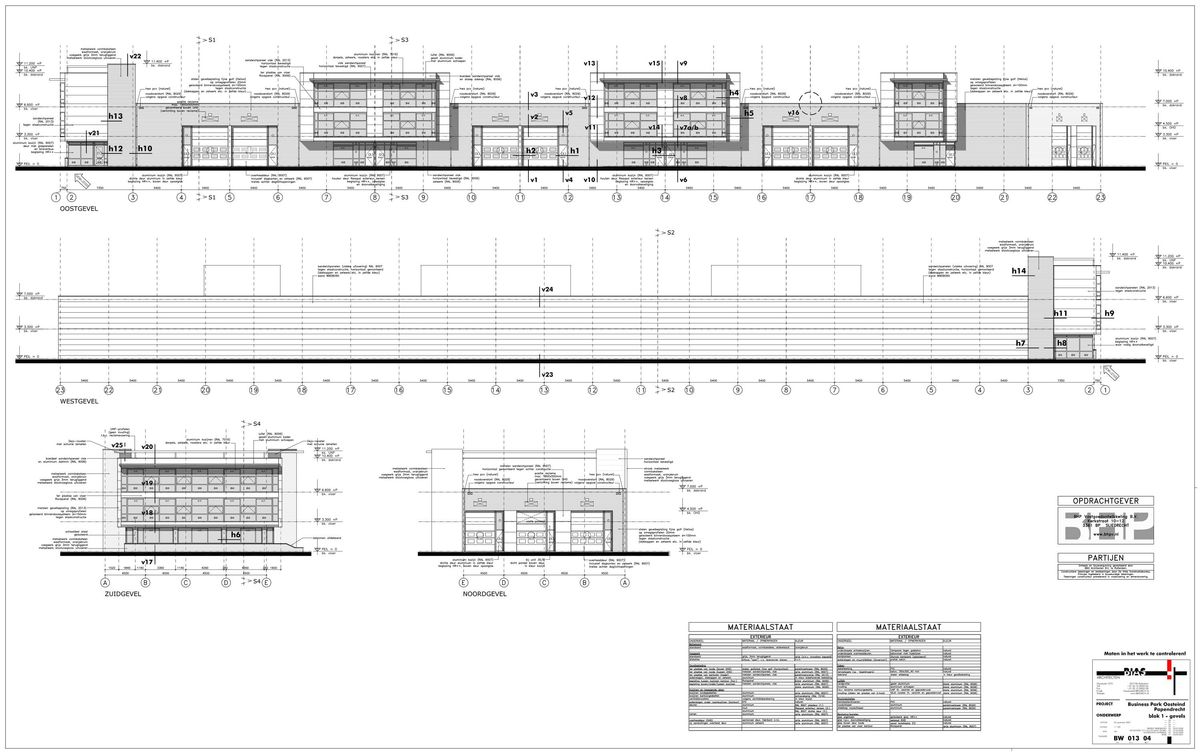 - Gevels geïsoleerde metalen sandwichpanelen, combinatie van metselwerk en gevelbeplating;