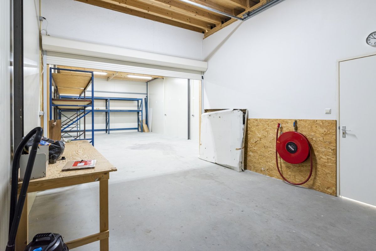 - Bedrijfsruimte met verlichting, diverse stroompunten, verwarming (heater), handbedienbare overheaddeur, vrije hoogte circa 4 meter;