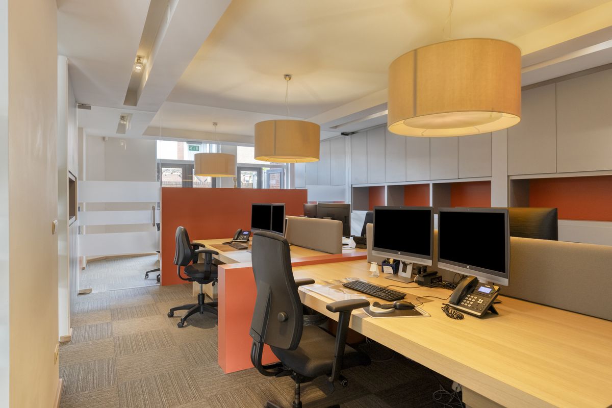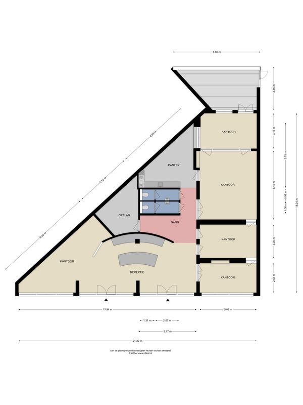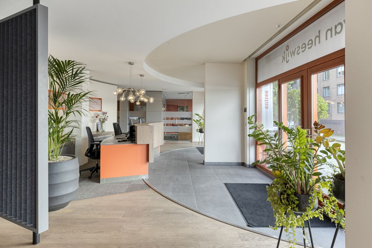 - Entree met receptie en ontvangstruimte, open werkplekken, garderobe, toiletgroep, spreekruimte, keuken.